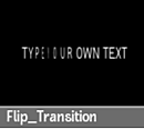 Flip_Transition Transition between two text strings, with characters rotating on the Y axis. Edit timing using transition_ctrl settings. |