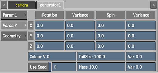 - Displays a variation to the X Spin channel once particles are spawned from the particle generator. Editable.