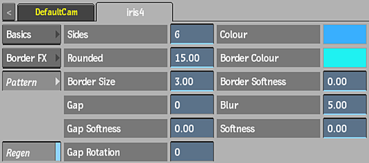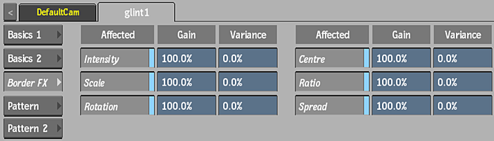The Lens Flare Object menu lets you control settings for the complete lens flare effect. The Border FX object and each attached component texture also have their own specific menus.