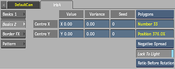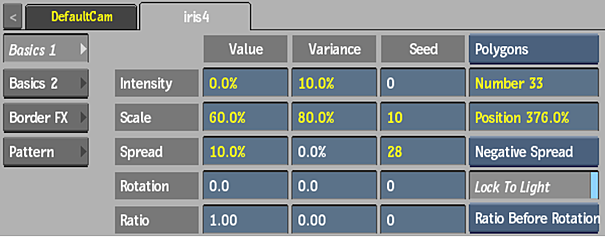 Use the pattern settings to control the texture before it is applied to the lens flare or ray. The settings in the Pattern tabs vary depending on the component type. You can get a quick description of each setting by viewing its tooltip.