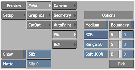 Note: To fill a boundary with a reference image, set the Reference box to Front, Back, or Saved, and enable Medium.