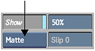 When viewing the matte, use the Transparency field to vary the matte display transparency from 0% (completely transparent) to 100% (fully opaque). Press Alt+T or click Transparency in the Setup menu to toggle between the last set value and 100%. The transparency value only affects the display of the matte. It does not affect how the matte is used.