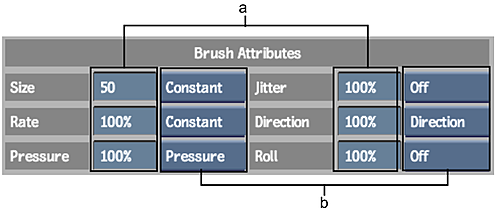 (a) Brush Attribute fields  (b) Attribute Mode controls
