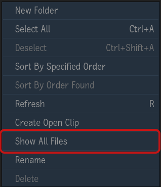Show All FilesYou can now display in MediaHub files that cannot be imported (unsupported) in Flame Family products.