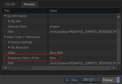 Sharpness is not supported by older SonyRAW media files, such as files generated by Sony F65 cameras. Look at . Sharpness affects the media only if it says True.