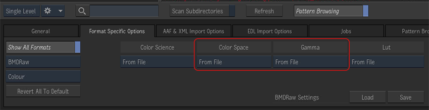 | Selected Colour Space | Selected Gamma | Clip Tagged with Colour Space |