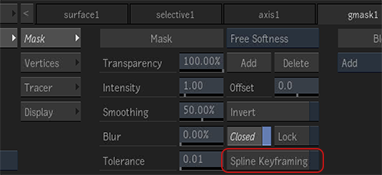 Enable Spline Keyframing to create key frames for the GMask spline even when Auto Key is disabled.