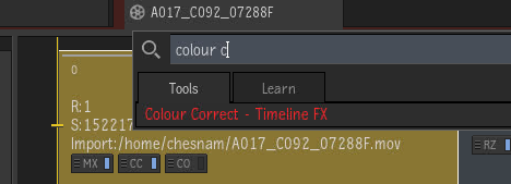 Just like you can add nodes in Batch and Action with Search, you can now use it to add Timeline FX and transitions in Conform, Timeline, and Effects.
