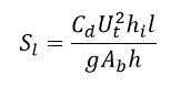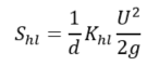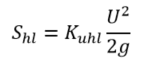 where: Sh l =slope due to headloss Ku h l = unit headloss coefficient (1/m) U = velocity (m/s) g = gravity acceleration (m/s2) |