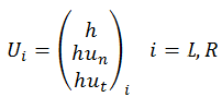 with the first component representing mass and the second and third representing momentum. L and R denote the left and right elements to the face. |