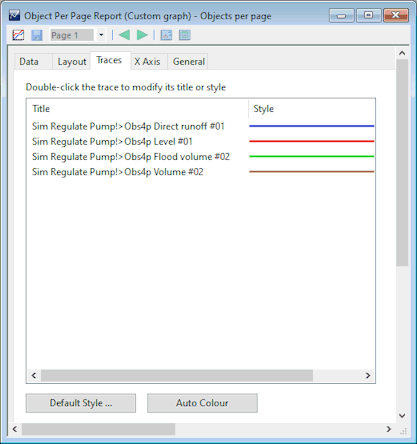 For each trace, InfoWorks ICM provides a title and a style:
