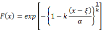 Scale, location and shape (α, χ, k) parameters of the selected probability distribution function are estimated using the method of L-moments.