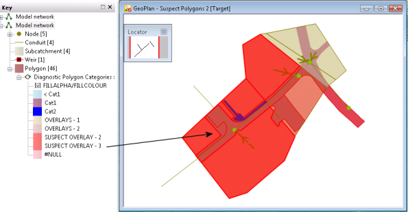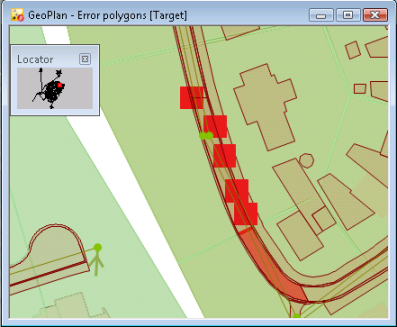 This example shows a network on which a series of error polygons have been generated. This points the user to the areas to investigate.