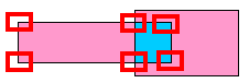Suspect polygons are highlighted in bright red. Other overlay polygons get assigned other colours, as shown below. The original polygons are assigned the same colours by default. (In the screenshot below, cat1 and cat2, which are the categories of the original polygons, have got both the same colour).
