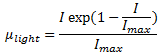 where: μlight = light limitation factor at depth, z, below the surface I= intensity of light at depth, z, below the surface Imax = light intensity which will produce maximum productivity |