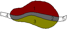 In this example, a network subcatchment and a GIS polygon representing a road overlap one another. Intersection is carried out, resulting in the creation of five new polygons.