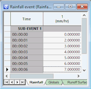 Different values can be set for each sub-event in the rainfall event. Sub-event parameters can also be overriden with local values for individual profiles. The local profile values can again vary on a sub-event by sub-event basis.