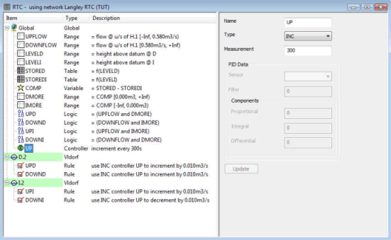 Condition: UPDRule type: CTRL Controller: UP Setpoint type: FIXED 0.010 m3/s |