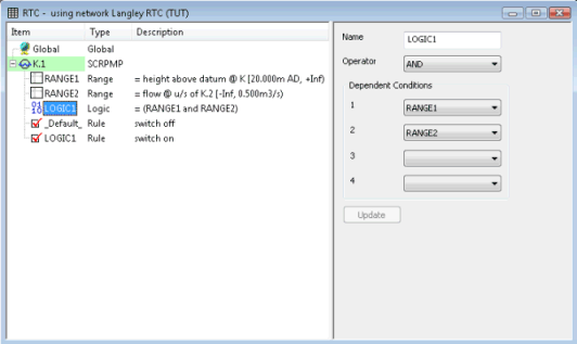 The output from up to four Ranges or Logic operators can be combined to give a TRUE or FALSE result. This result can be used as the input to either another logic operator or a rule.