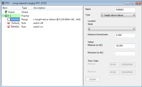 Ranges provide a logical output which is TRUE if the measured variable is within the defined range and FALSE if it is outside the defined range. Variables can be measured at any point in the system; they do not have to be local to a regulator.