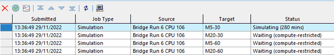 The status of a queued job is set to Waiting (compute restricted) in the Job Control window. For example: