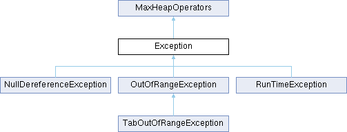 This serves as a base class for other exception classes. Instances of this class own and make their own copies of the error message.