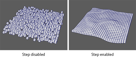 Step is enabled. Lower values cause all objects to have similar animation, while larger values will cause them to differ greatly.
