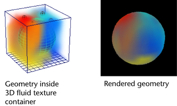 Mapping a 2D fluid texture to a surface shader creates the fluid pattern on the surface.