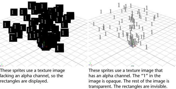 Lets you display a texture image or image sequence at each particle. Each particle can display an identical or different image or image sequence. Depending on the type of texture image you use, you can use sprites to create effects such as smoke, clouds, fog, and stars.