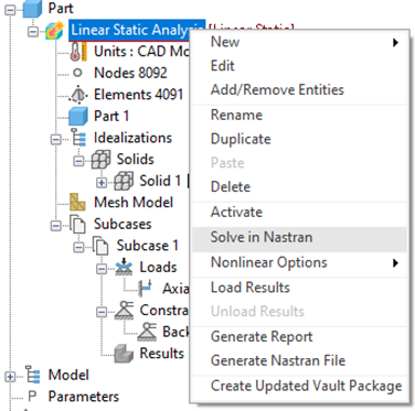 Results are automatically loaded into Autodesk Nastran In-CAD after the model is solved. After the solution is complete, Inventor Nastran places four different contour plots in the Results node under Subcase 1. These plots have default contour template settings, located at the bottom of the tree view, under Plot Templates.Each of these templates can be dragged and dropped into a subcase to create a new contour plot. You can right-click the template to edit the settings.