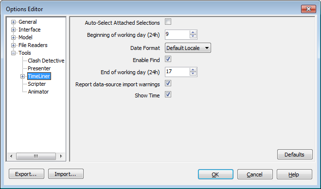 Expand the Tools node in the Options Editor, and click the TimeLiner option.