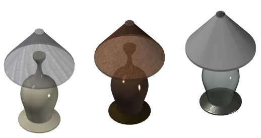 In the context of rendering, materials describe how an object reflects or transmits light. Materials that you've created and attached to objects in the model are displayed in views and rendered images.