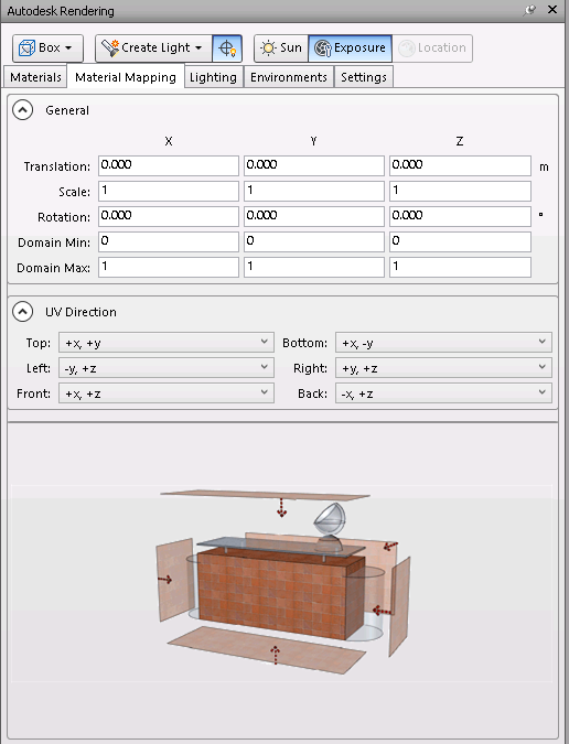 Use the Material Mapping tab to customize the default settings for the Material Mapping type selected on the Rendering toolbar. This feature is recommended for advanced users only.