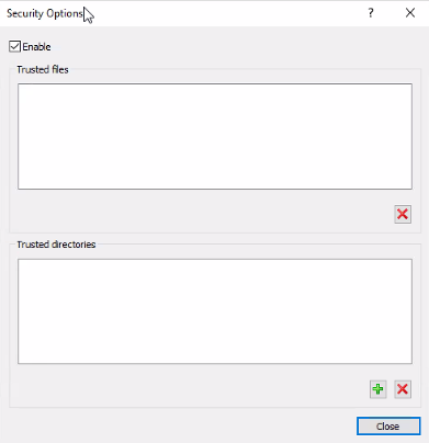 Trusted directories — You can add trusted directories to this list. Any files that are located within this directory are considered safe and do not get checked for potential harmful commands.