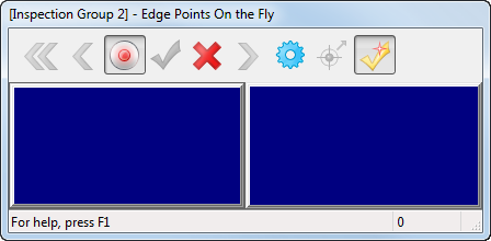 When you manually inspect an Edge Points On-the-fly group using a CMM or portable device, PowerInspect switches to a full-screen view and displays the Edge Points on the Fly dialog so you can probe the points on the part.