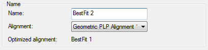 The Optimized alignment box displays the name of the item that is optimized by this Best Fit item. If the alignment you selected in the Alignment list has not been optimized previously, that alignment is optimized. If the selected alignment has already been optimized by other Best Fit items, the latest Best Fit item that is based on the alignment is optimized.
