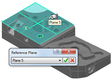 When you construct items, you must reference other items in the Sequence Tree. You can select an item by clicking on it in the CAD view. This is useful when you can see the item, but are not sure of its name.