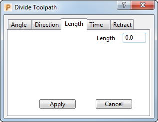 If one or more segments in the original toolpath are longer than the specified Length, some of the toolpaths produced by the divide operation will also exceed the Length. In this case, a warning message is displayed: