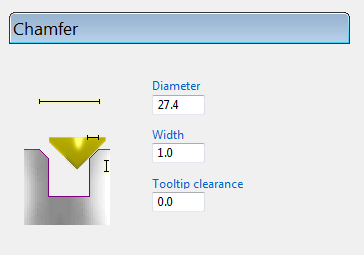 Tooltip Clearance — Enter the distance between the lower edge of the chamfer and the tip of the tool. This option is available only if you select a Cycle type of Profile on the main Drilling page.