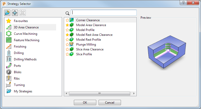 ) it from the Favourites folder. PowerMill also displays your favourite strategies in the Favourites gallery on the Home tab.