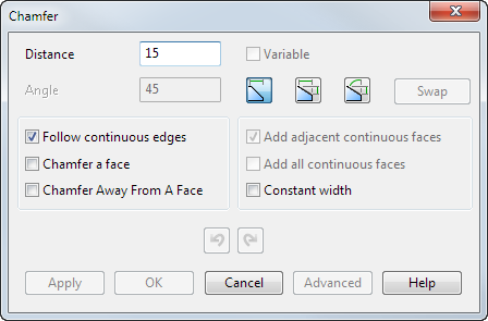 - Click the Solid tab > Feature panel > Fillet > Chamfer.