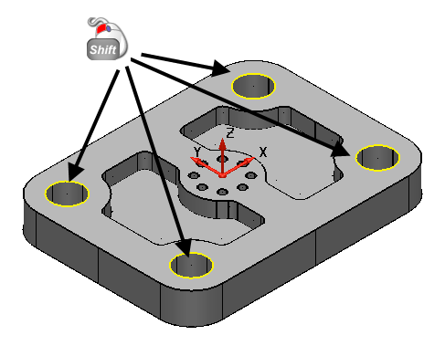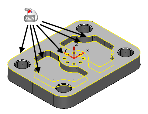 - Press and hold the Shift key, and click the edges of the other cuts and the edge of the extrusion.