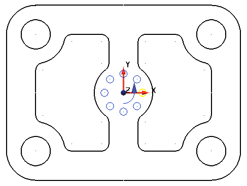 Copying and rotating objects around an axis normal to the principal plane, is a quick way to add multiple, identical objects in a pattern, such as screw holes.