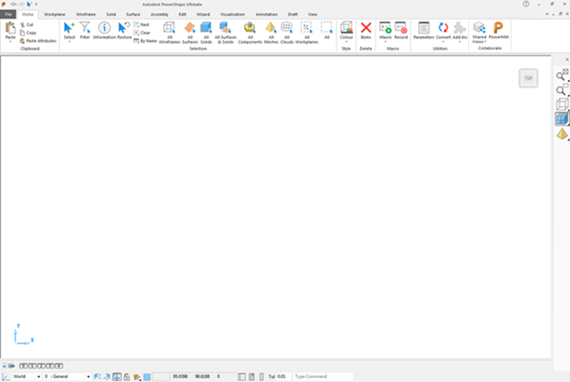 After a brief wait, PowerShape starts up. A new, empty model is opened.