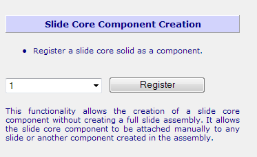 - Make sure the first page of the Slide wizard is displayed. For further details, see Creating a core using the Slide Core wizard.