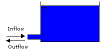 Another important piece of information is how water enters the reservoir. Typical arrangements are shown in the figure below. Note that in (c) no backflow (from the reservoir) is possible, while in (d) a non-return valve (NRV) permits rapid backflow.