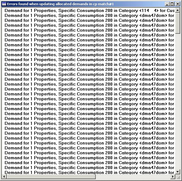 Demand for 1 Properties, Specific Consumption <X> in Category <Y> for Customer Point <CP> not found at Node <N>. |