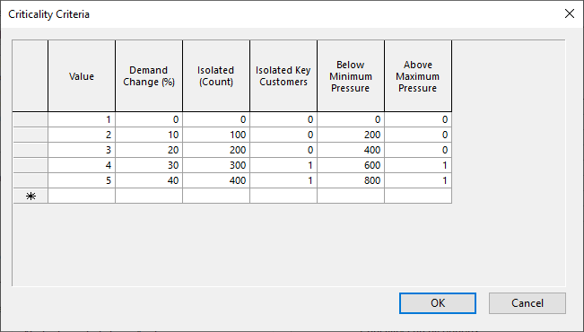 This dialog is used when updating the Criticality grade of links during a Critical Link Analysis (CLA) simulation. CLA results are processed against the criteria specified in the grid.