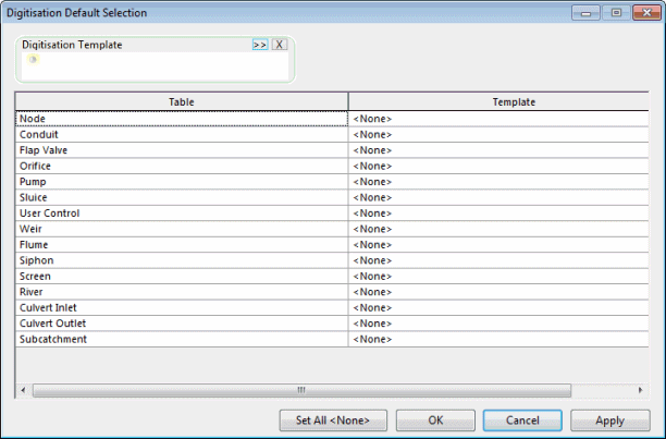 This dialog is used to select the templates stored in a digitisation template to be used for setting default values when new network objects are created.