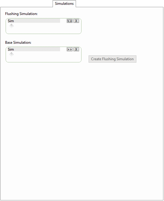 Enabled when only a base simulation has been added. Creates a new flushing simulation from the base simulation. The flushing simulation will be created in the same run group as the base simulation and will automatically be selected as the flushing simulation in the Flushing Scheduler. |